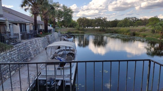 A spacious 2 bedroom and 2 bathroom townhome on the water channel as part of beautiful Lake LBJ within Horseshoe Bay Resort. High end quality and comfortable furnishing with patio. High ceiling throughout the living and kitchen area. The unit includes 2 covered parking spots right by the entrance.About pets:Pets allowed: dogs and cats less than 20 lbs per pet (limit one pet total).About checkOut:Check out before 11:00 AM.About children:Children allowed: ages 0-17.About checkIn:Check in after 4:00 PM.About smoking:Smoking is not permitted.About minBookingAge:Minimum age to rent: 21.About events:No events allowed.